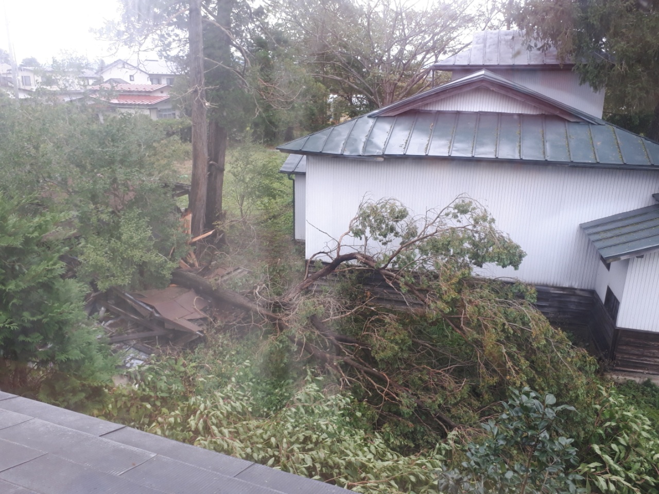 ただ明け方に、自宅裏の空き家の庭にある大きな木が台風でなぎ倒され、小屋が潰されていました。